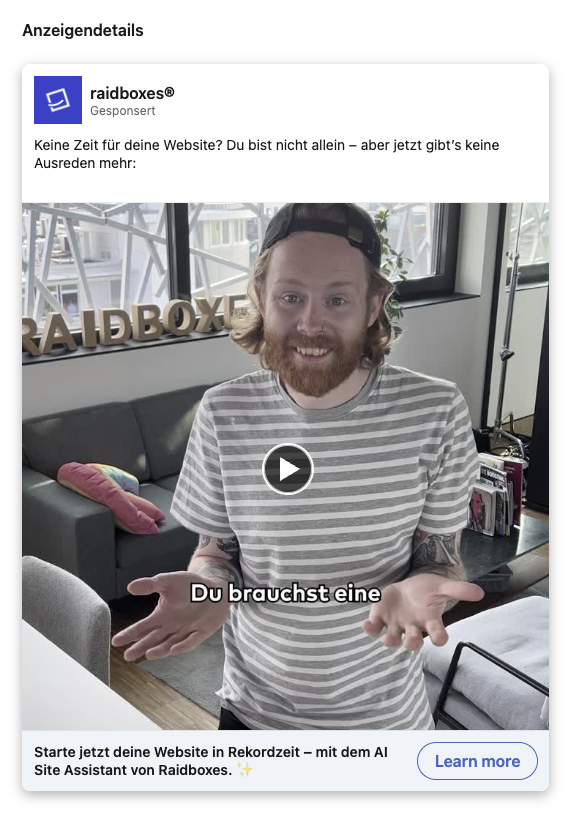 Letzte Woche sah ich diese Anzeige auf LinkedIn von Raidboxes: „Keine Zeit für deine Website? Du bist nicht allein – aber jetzt gibt's keine Ausreden mehr.“